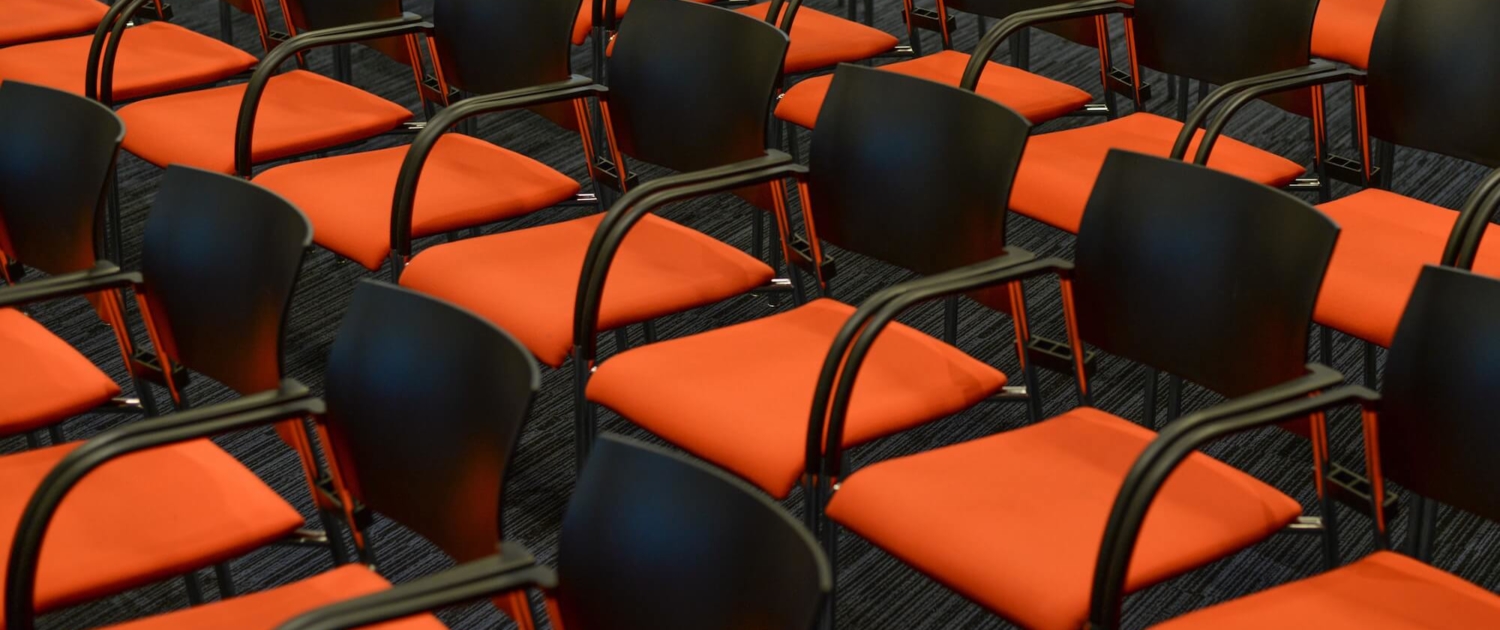 Stühle und/oder Tische, wie in der Schule, nur dass die Stühle manchmal etwas bequemer sind.